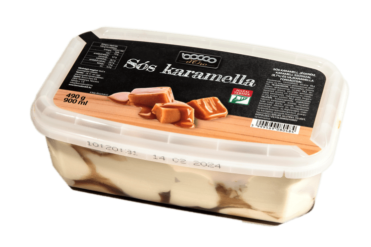 Sós karamellás jégkrém, karamell ízű öntettel (8,7%)