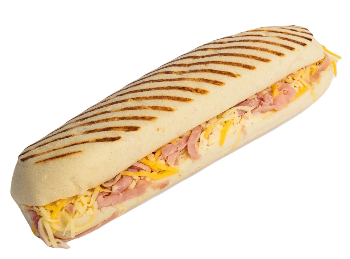 „Sonkás sajtos panini: Panini: (Búzaliszt, ivóvíz, jódozott só, élesztő, búzaglutén, lisztkezelő szer), Szendvics sonka: (Sertéscomb, víz, sertéslapocka, dextróz, só, burgonyakeménytő, anitoxidáns E316), Trappista sajt: (Tej, Mikróbatenyészet, Oltóenzim), Sajtkrém: (Sajt (43%) Tej, tejsavbaktérium-kultúra, étkezési só, szilárdítóanyag), Majonéz: (Étolaj (66, 6%), Víz (13%), Mustár (víz, ételecet, mustármag, cukor, só)), Hagymalekvár: (Lilahagyma, cukor, étolaj, balzsamecet, fűszerek), Cheddar sajt: (Tej, Mikróbatenyészet, Oltóenzim), Magos mustár: (Mustármag, ecet, fűszerek).Minőségét megőrzi: a csomagoláson jelzett időpontig (nn.hh.éééé).