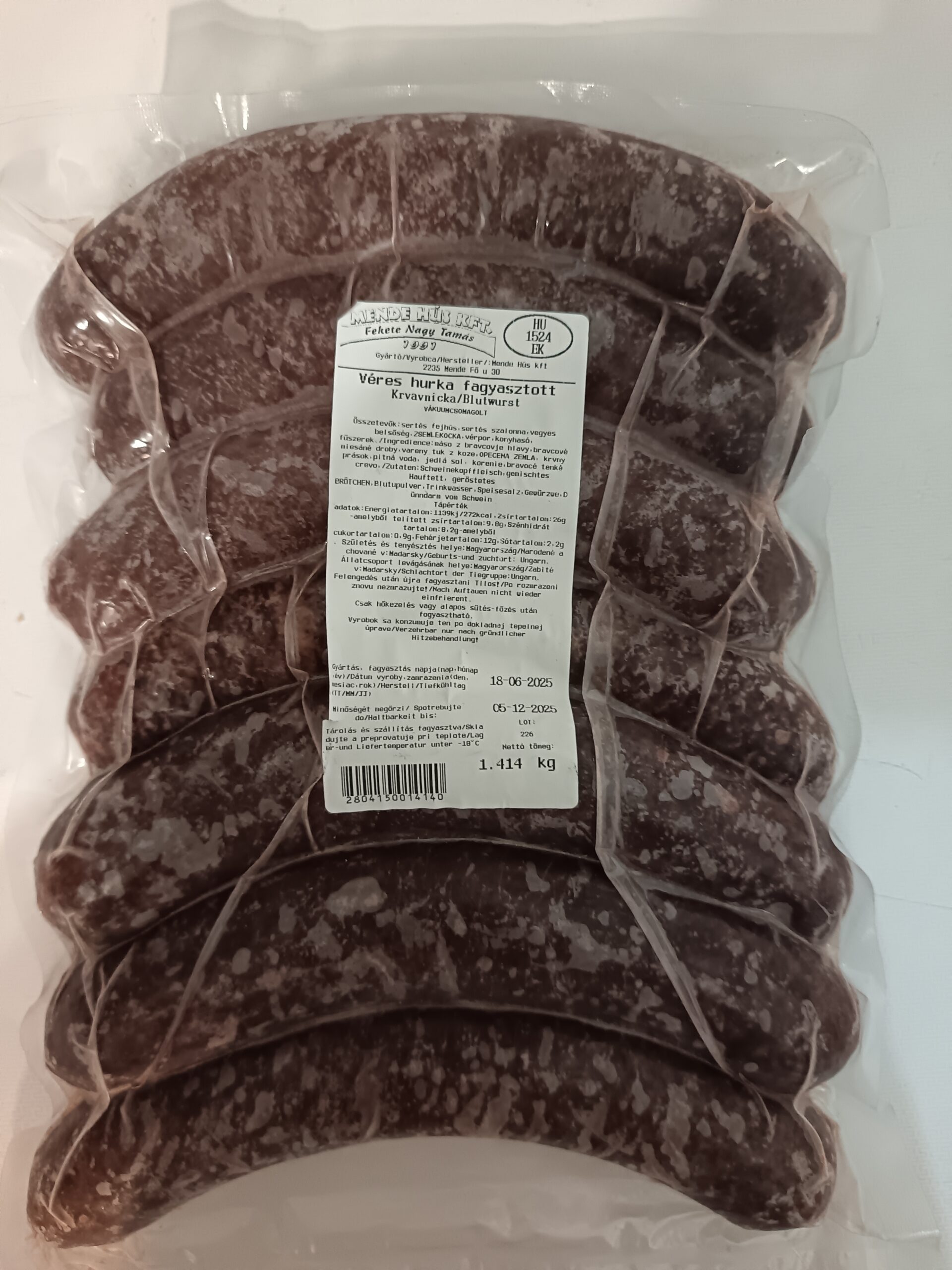 „Házias jellegű májas hurka. 20-25 cm hosszú.