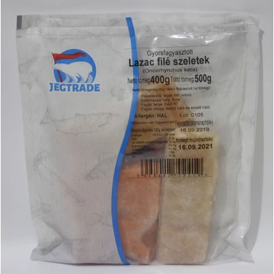 Keta lazac (Onchorhyncus keta) filé szeletek, cca 160-180g/szelet. Egyedileg fagyasztott, 20% glazúrral.