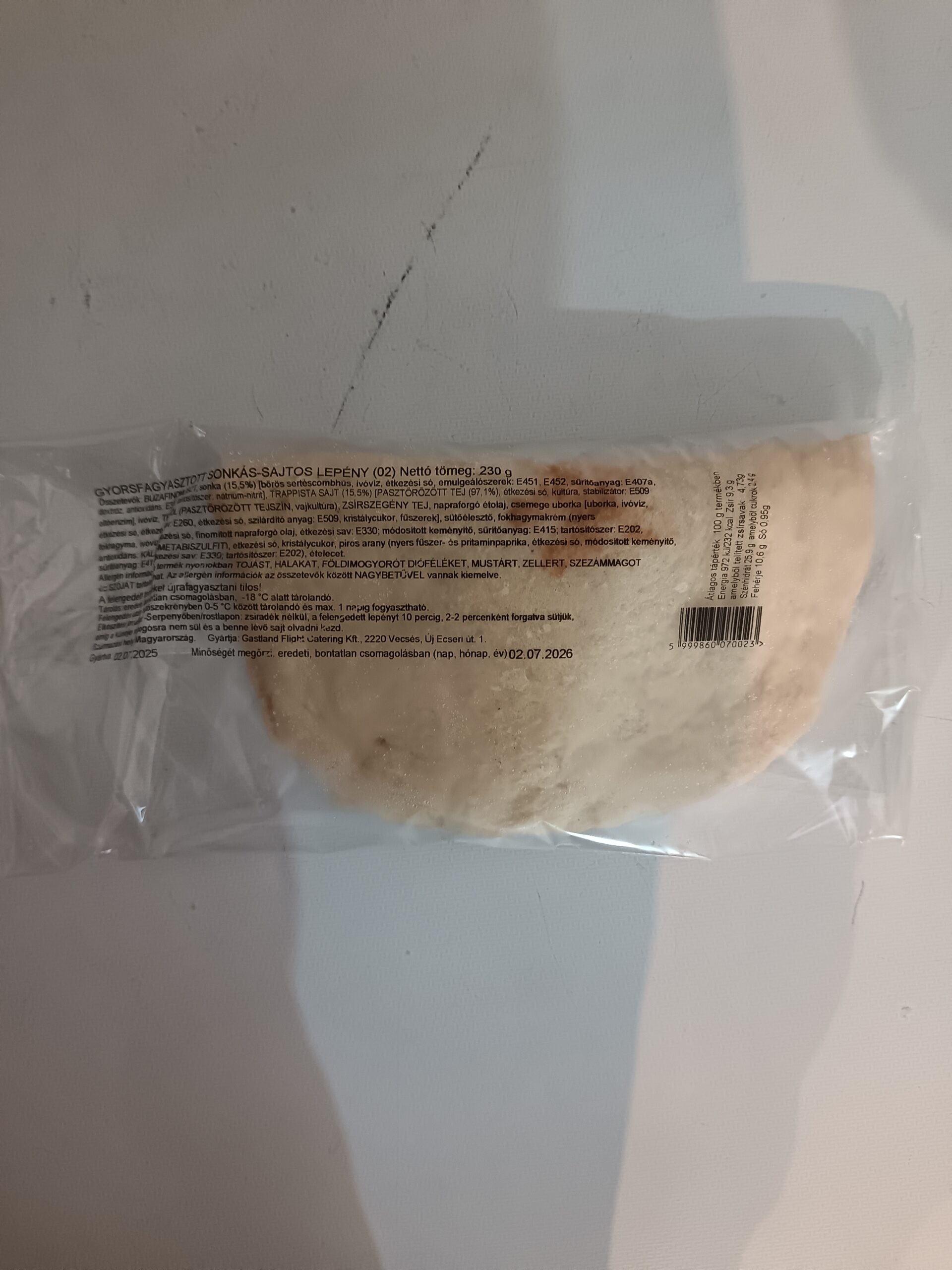 Tárolás -18 Celsius fokon.”